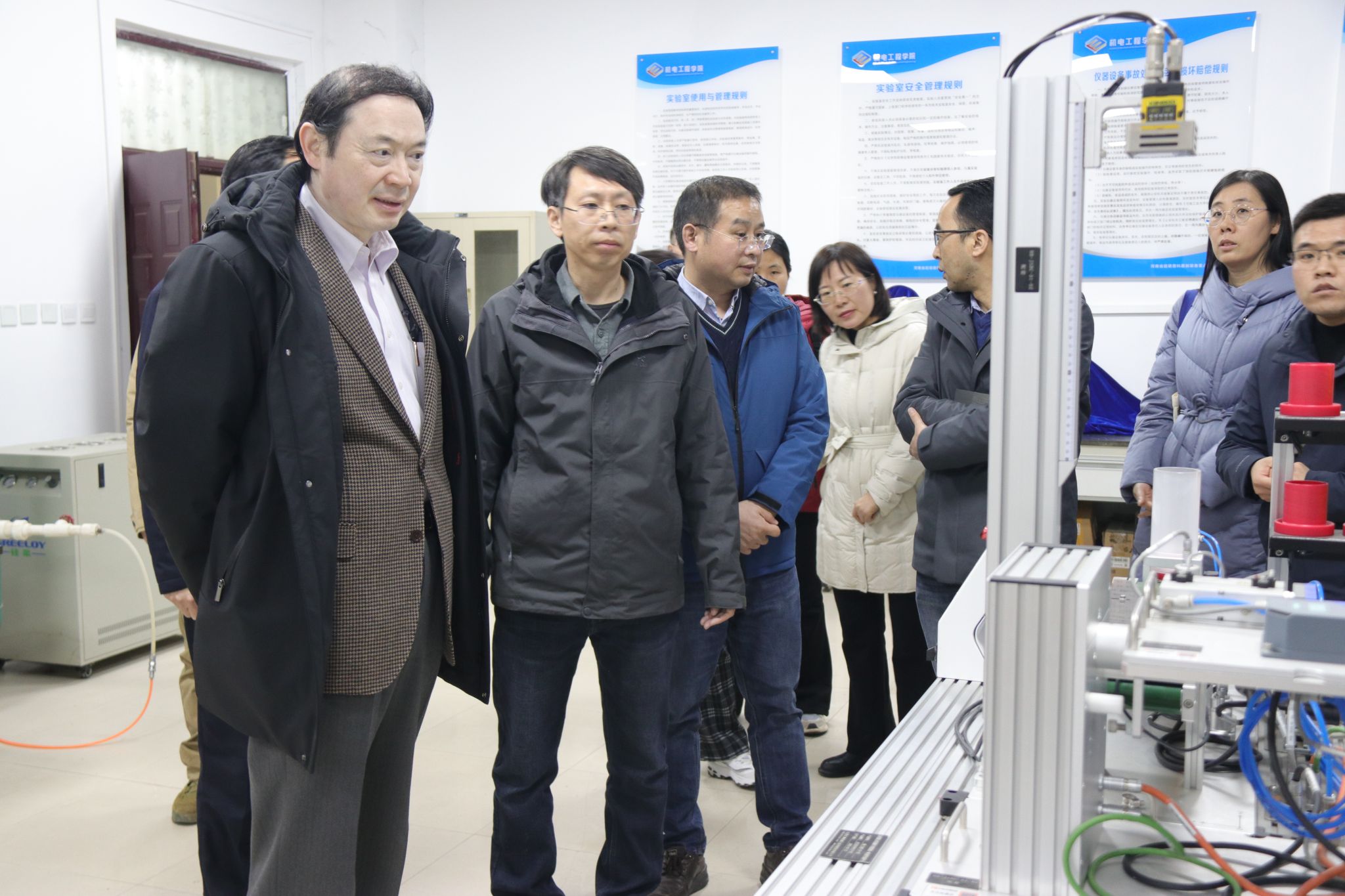 张博强简要介绍了学院科研平台的总体情况。郭永刚和实验室相关负责人介绍了省重点实验室、工程研究中心和国际联合实验室的总体架构和研究方向,平台相关老师详细讲解了实验室的研究成果和目前正在开展的研究工作。