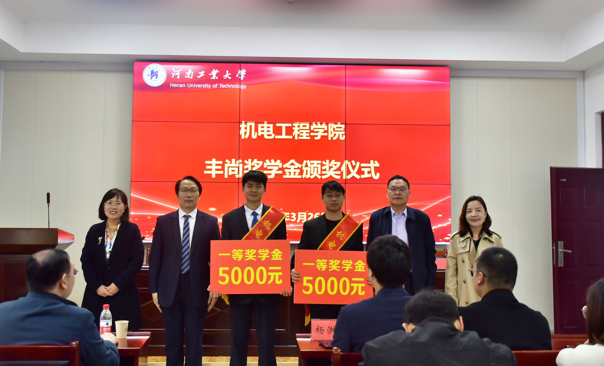 关于表彰2023年度“丰尚”奖学金获奖学生的决定》,与会嘉宾为获奖学生代表颁发了奖项。机制2003班王子政代表获奖学生对丰尚农牧装备有限公司致以诚挚谢意,表达了自己对社会爱心企业的感激之情,承诺一定肩负起青年学子的责任和使命,付出更大的努力,取得更大的进步,回报学校和社会。