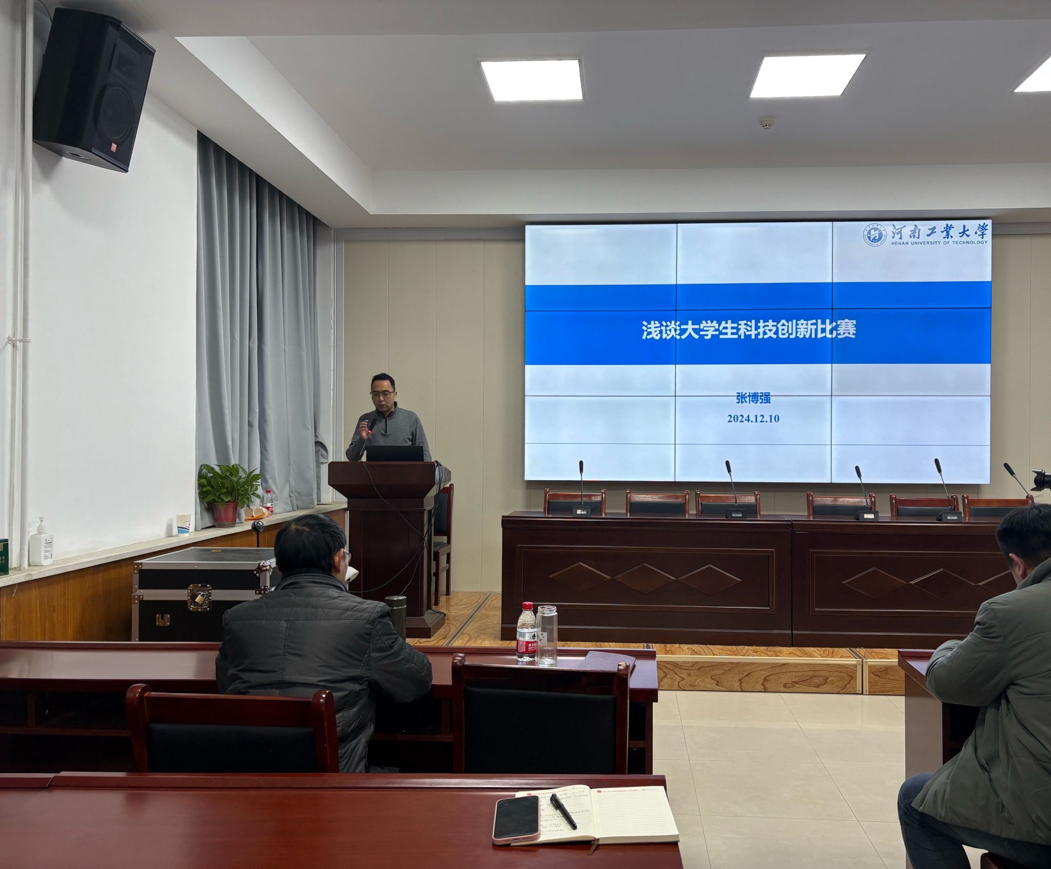 在惟明楼7224捷赛报告厅举办2025年学生科技创新竞赛专题培训会。培训会邀请校团委副书记李凯歌、学院副院长张博强、学院科技创新优秀指导教师赵治华担任主讲。学院党委副书记张东霞、全体辅导员和百余名师生参加了此次培训会,培训会由院团委书记丁晶晶主持。