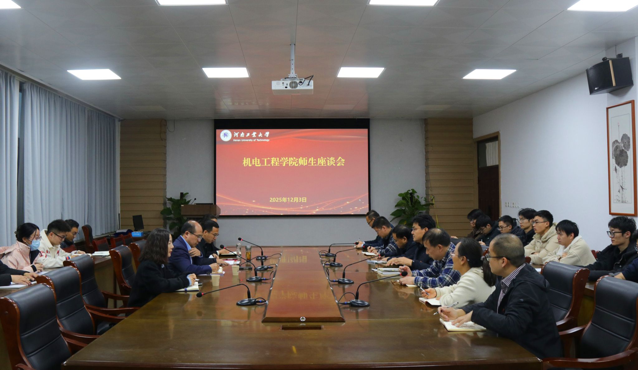 自由交流环节,师生代表积极发言。教师围绕育人机制优化、办公环境改善、实践教学升级等提出建议;学生则聚焦考研支持、就业指导、成长资源等话题畅谈想法。现场互动频繁,气氛热烈,展现了学院师生务实进取、共谋发展的良好风貌。