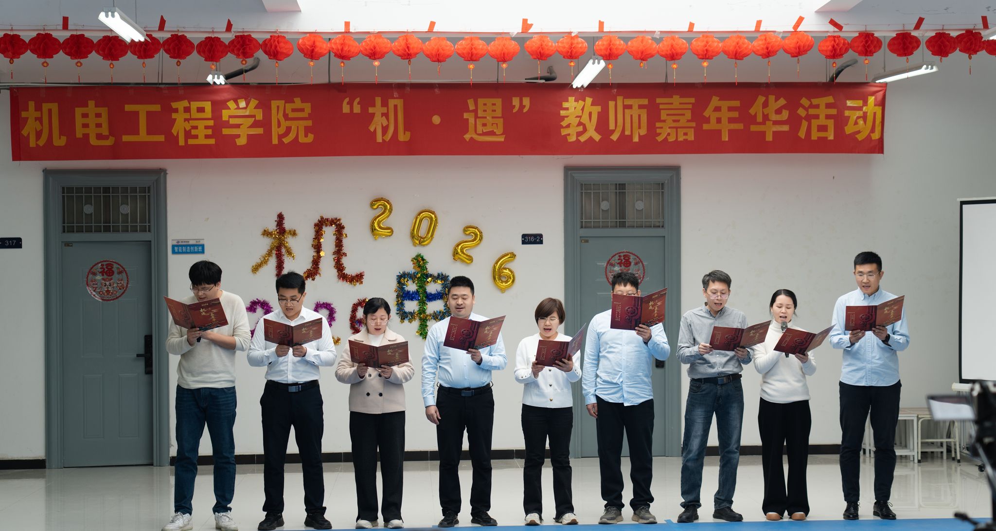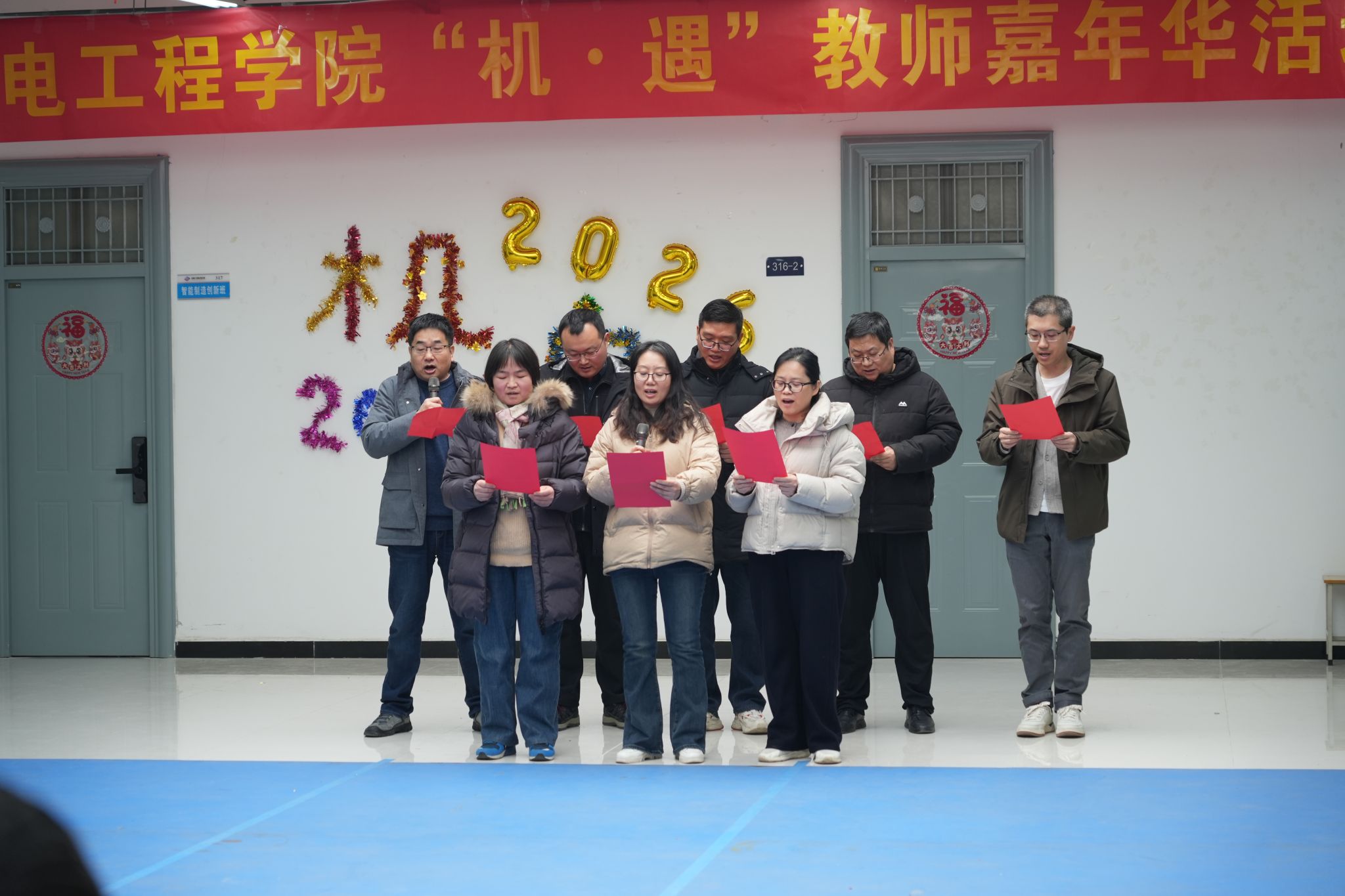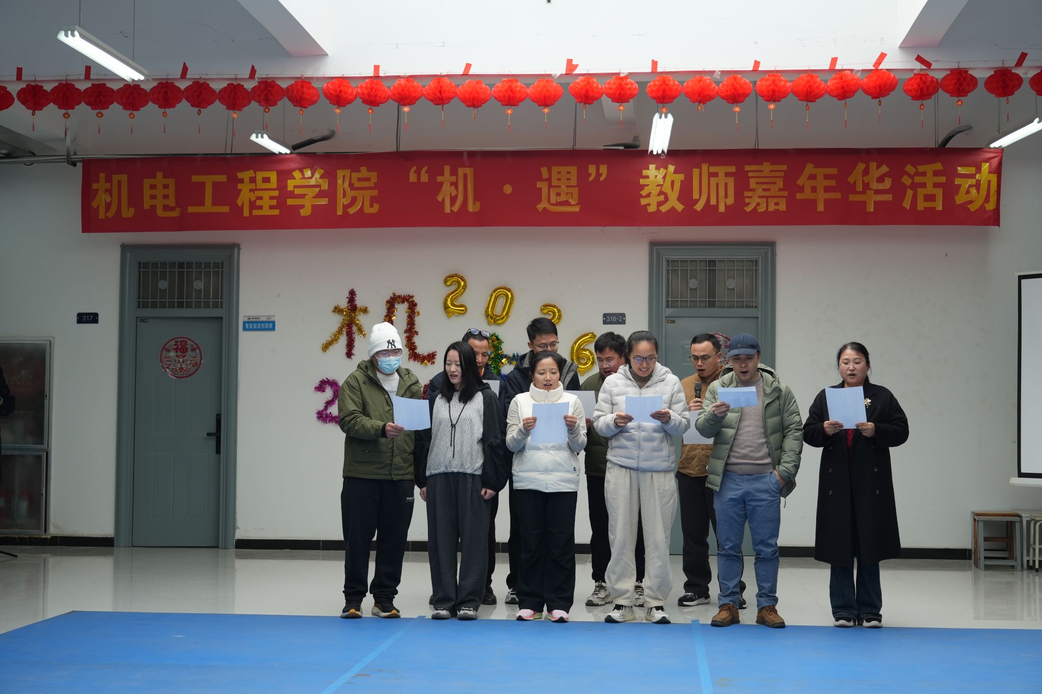 为迎接2026年元旦佳节,进一步丰富教职工文化生活、提升学院凝聚力,低调看直播 1230日在机械工程创新实验中心三楼大厅举办“机·遇”教师嘉年华活动。学院领导班子与全体教师欢聚一堂,共庆新年。