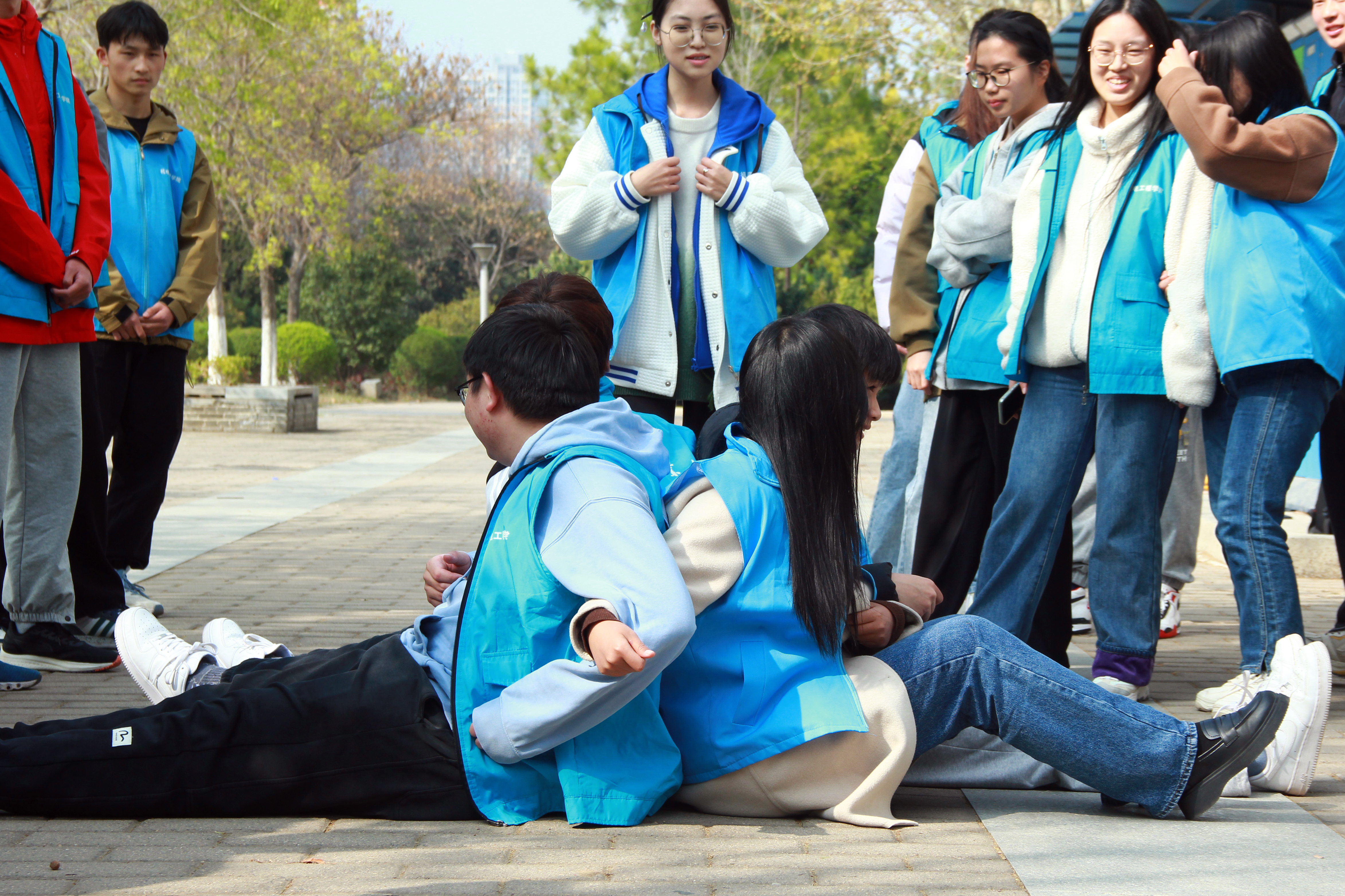 活动期间,大家依次开展了“无敌门神”“众志成城”“泡泡糖”“老虎猎人枪”“决战巅峰”等丰富多彩的素质拓展小游戏。同学们在游戏比拼中挥洒汗水,奋勇争先,激发了团队合作意识和奉献意识,增进了彼此信任感和集体荣誉感。整场活动充满了欢声笑语,同学们在沟通与交流中敞开心扉,释放压力,放飞自我,净化心灵。