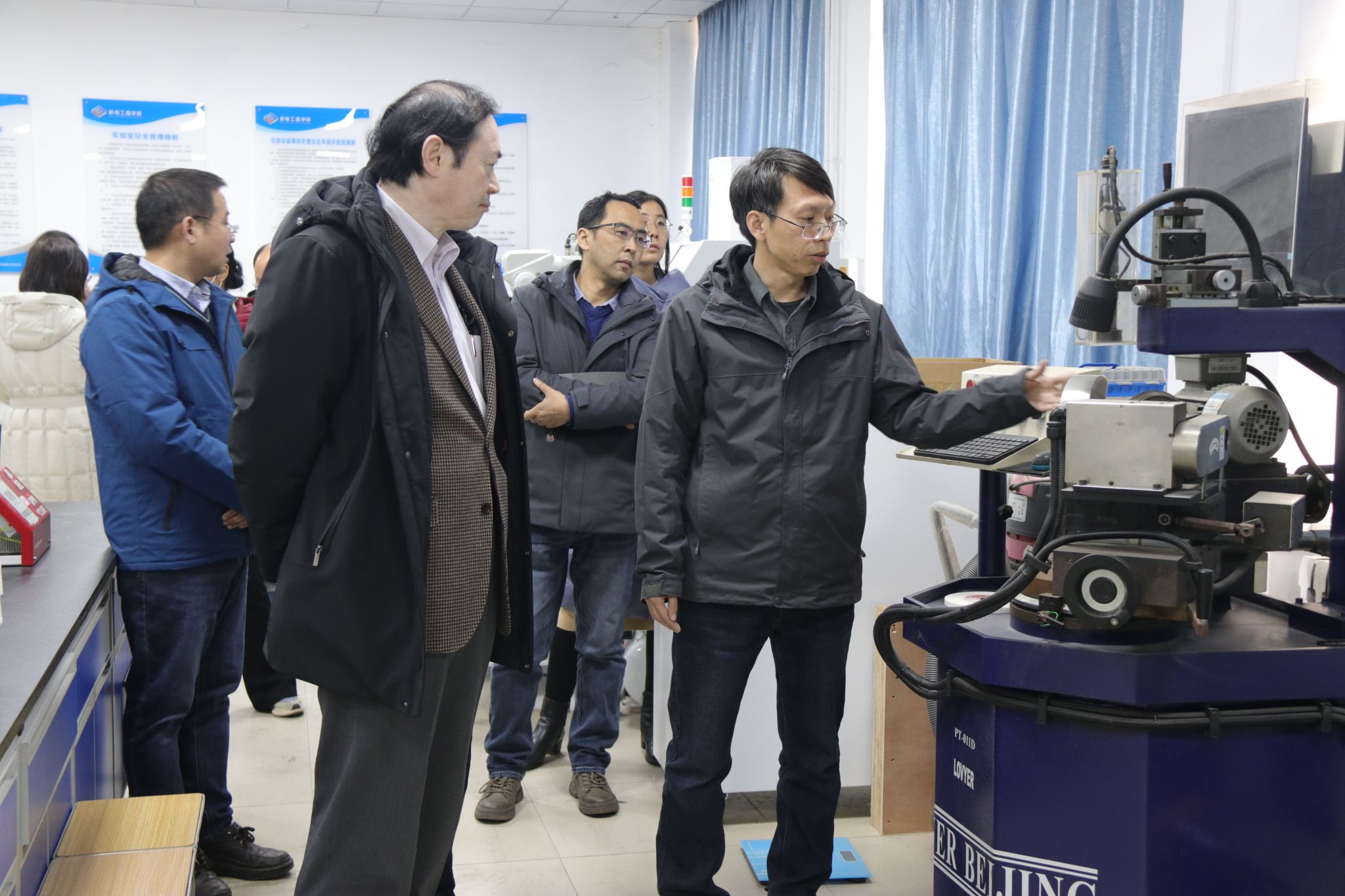 张博强简要介绍了学院科研平台的总体情况。郭永刚和实验室相关负责人介绍了省重点实验室、工程研究中心和国际联合实验室的总体架构和研究方向,平台相关老师详细讲解了实验室的研究成果和目前正在开展的研究工作。