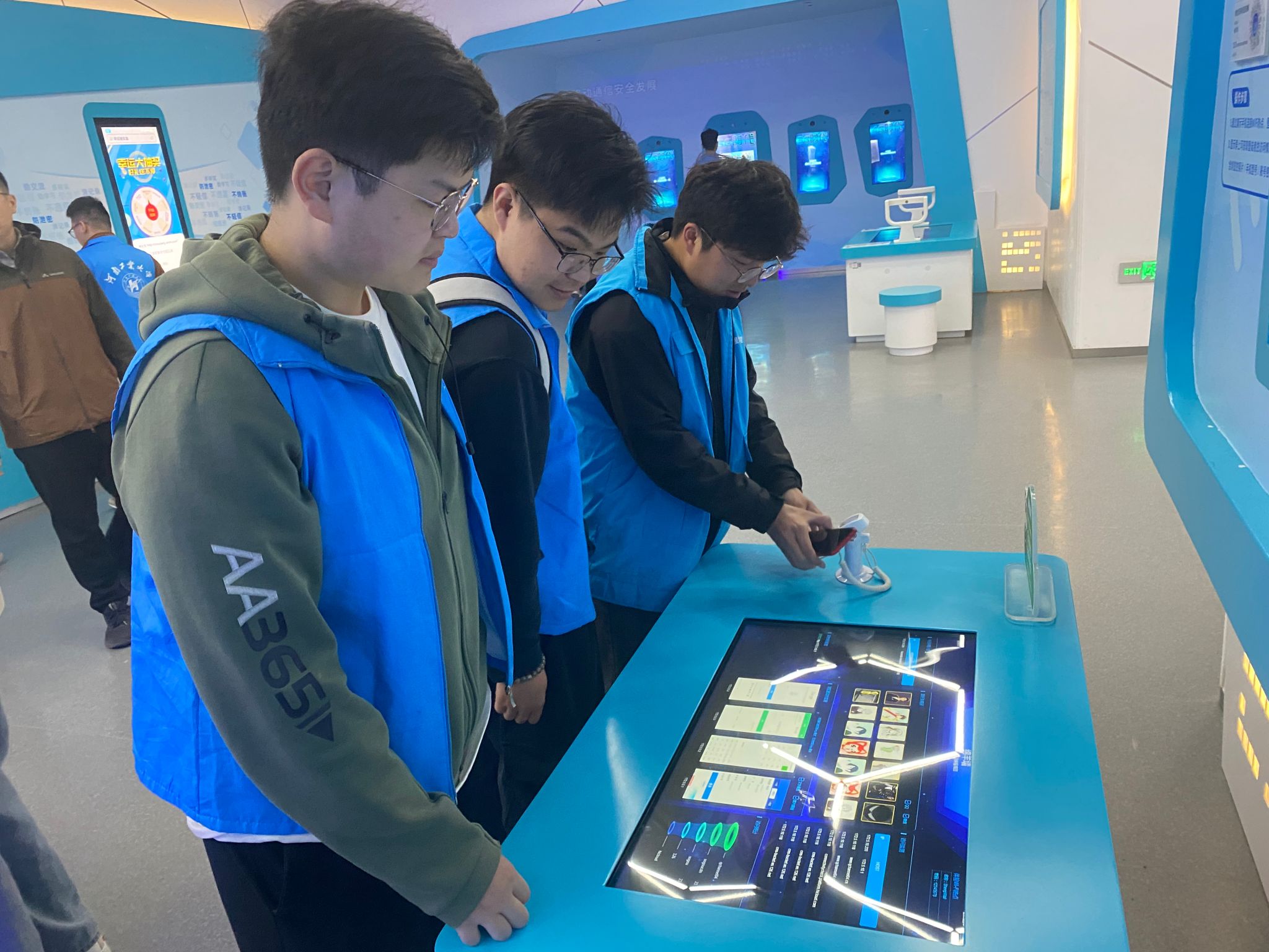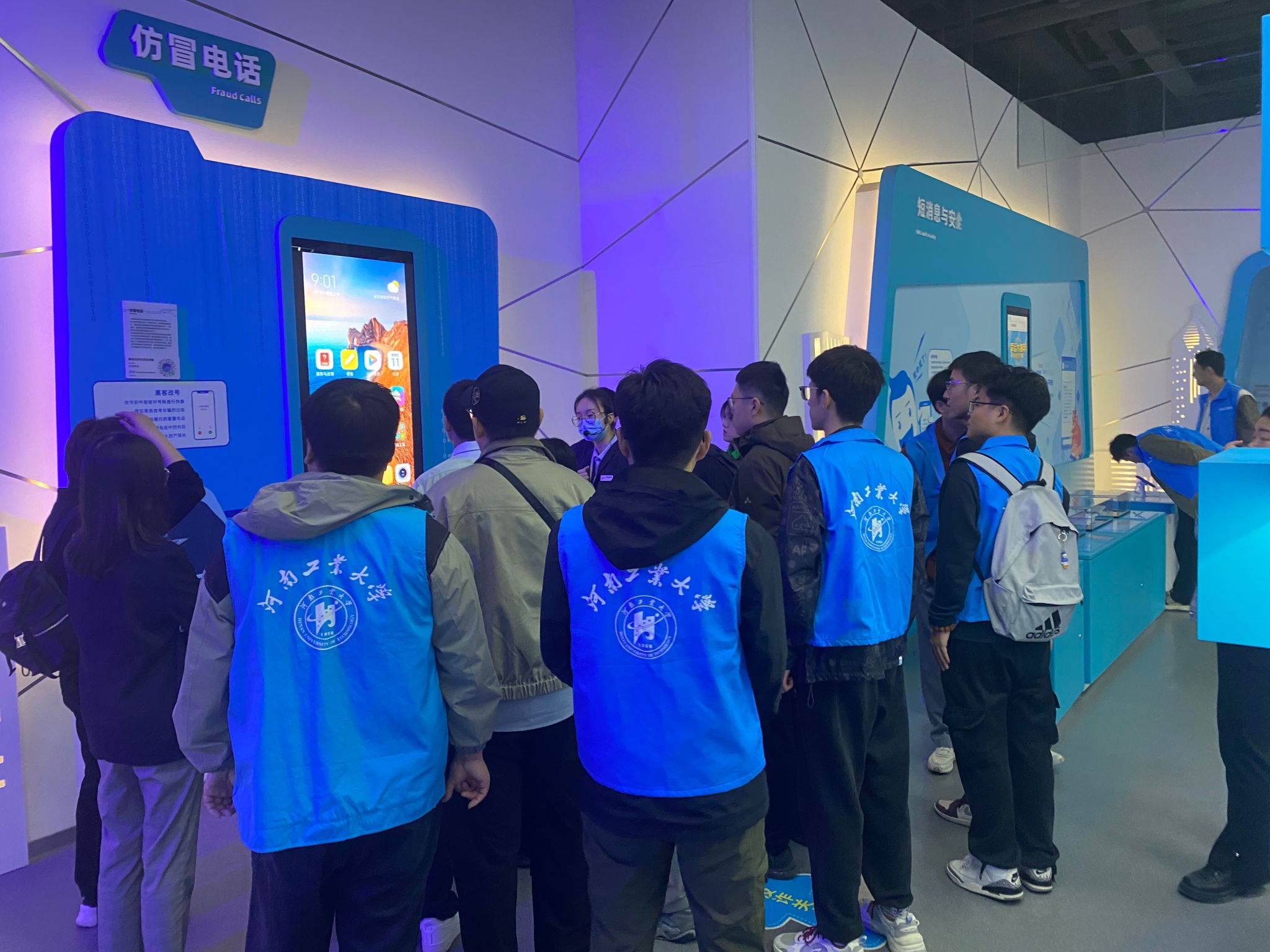 郑州市网络安全科技馆设置个人安全、政企安全、社会安全、综合竞技四个主展区,共200余个展项和1700多件展品。在讲解员的带领下,同学们通过听讲解、互动体验、实物演示等方式,了解了恶意手机充电桩、NFC隐私泄露、网络新型诈骗、智能家居安全隐患等生活中常见的网络安全问题,深入了解网络密码与安全、网络攻击和防御、网络浏览器的技术与发展等网络知识,学到了常用的网络安全技术和抵御安全风险技巧。