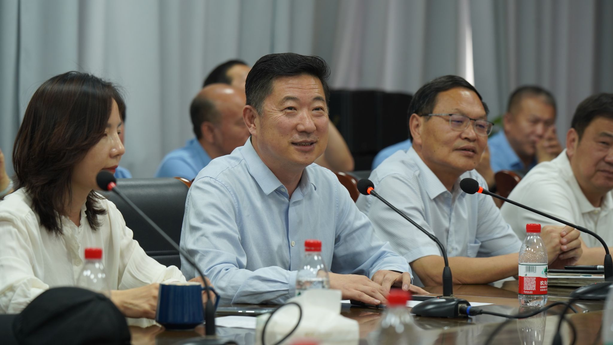 会议室举行了师生座谈会。副校长李焕锋、校友办公室副主任赵强、低调看直播