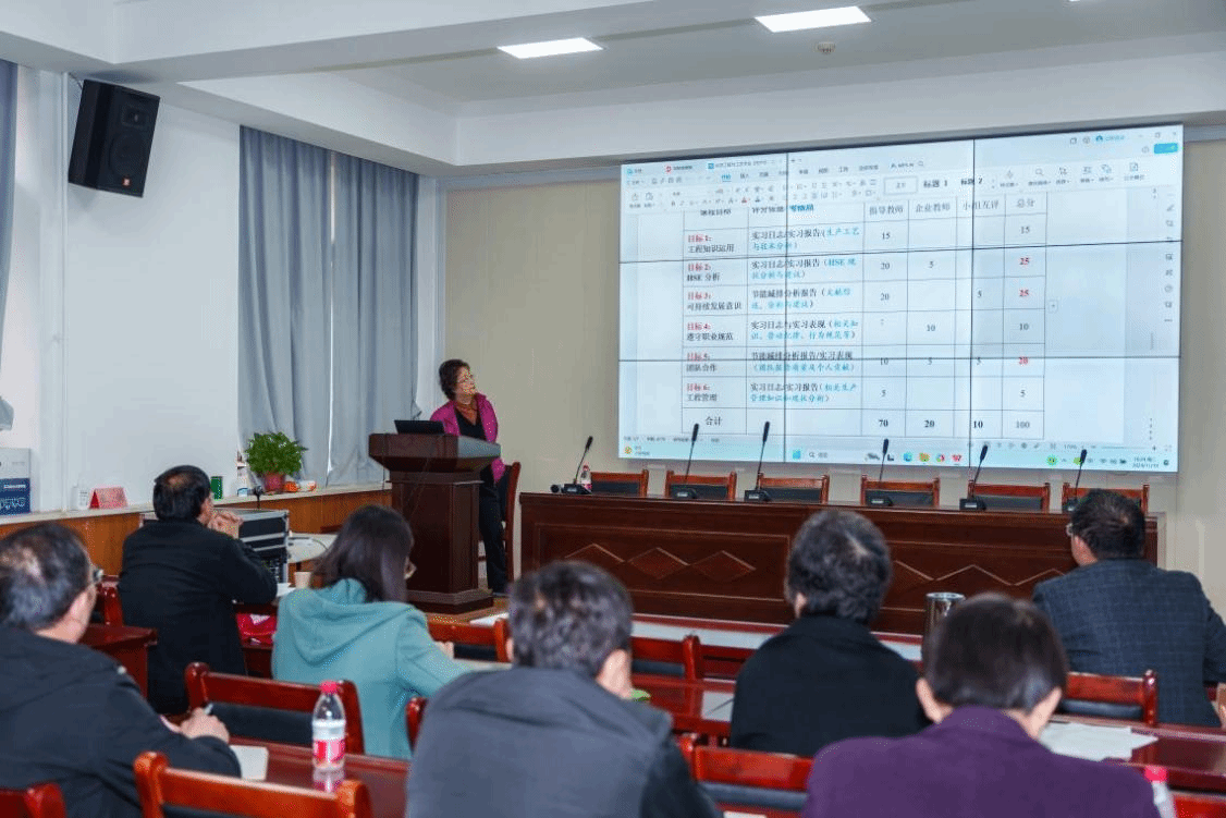 核心课程教师参加,副院长郭永刚主持。乐教授围绕“面向产出的教学大纲设计与课程质量评价”,对我校机械设计制造及其自动化、过程装备与控制工程、材料成型及控制工程等三个本科专业的培养目标、毕业要求、课程体系、支撑矩阵等进行了详细的点评和指导。最后,围绕十几门专业核心课程的课程大纲和课程达成质量评价报告,进行了详尽的剖析和整改。