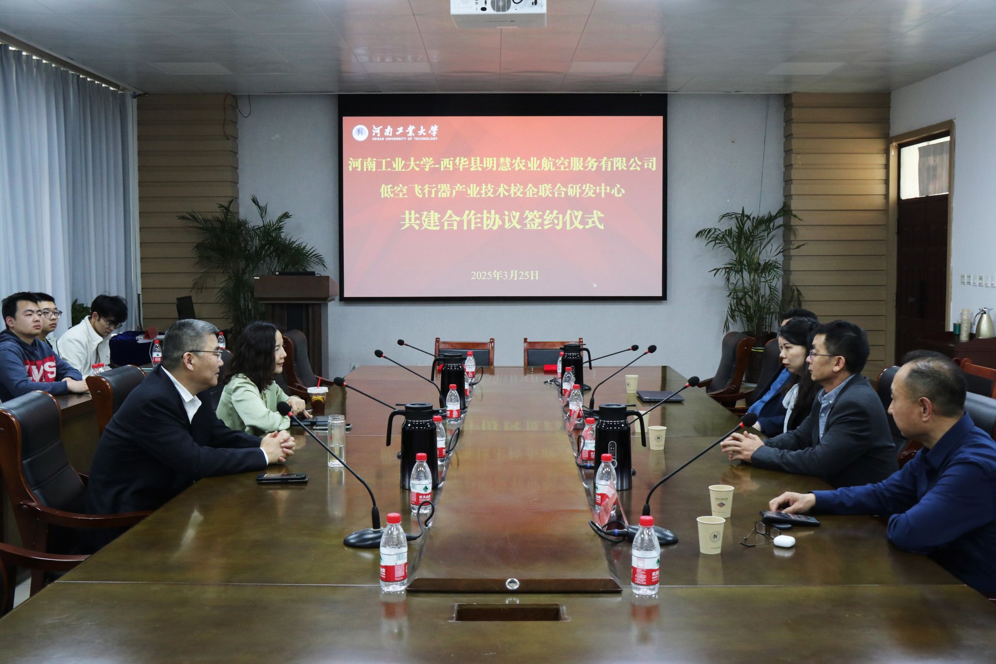 3月25日下午,学院与西华县明慧农业航空服务有限公司共建“低空飞行器产业技术校企联合研发中心”合作协议签约仪式在惟明楼7244会议室举行。院长吴兰、郑州轻工业行业协会秘书长兼河南工业大学双碳产业创新中心执行主任王民忠、西华县明慧农业航空服务有限公司总经理安英民、办公室主任尹玉安等双方代表共同出席仪式。