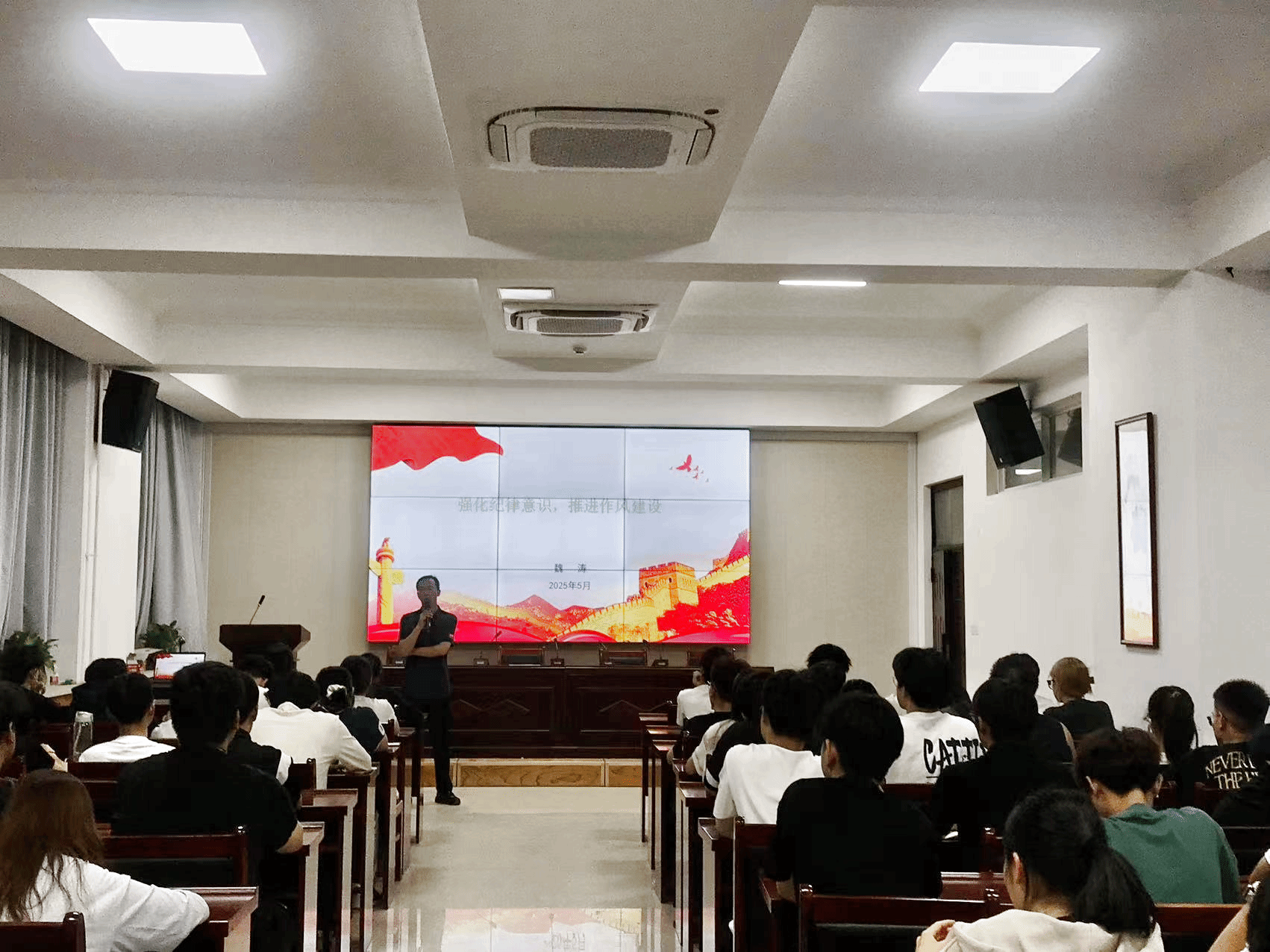 开班仪式结束后,魏涛为全体入党积极分子讲授题为《强化纪律意识,推进作风建设》的党课第一讲。(撰稿:周贝贝 摄影:李晨熙 审校:张东霞 审核:魏涛)