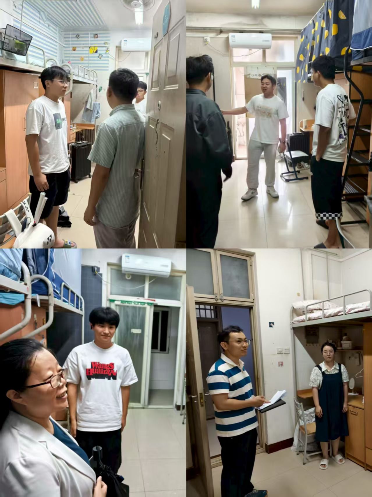 晚间,学院党委书记魏涛带领辅导员和班主任深入新生宿舍,进一步了解学生需求,为他们送上入学后的第一份关怀。