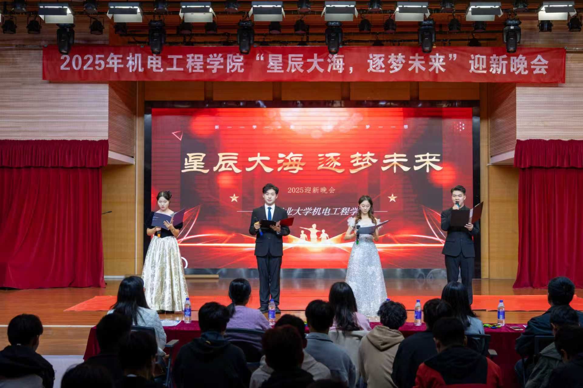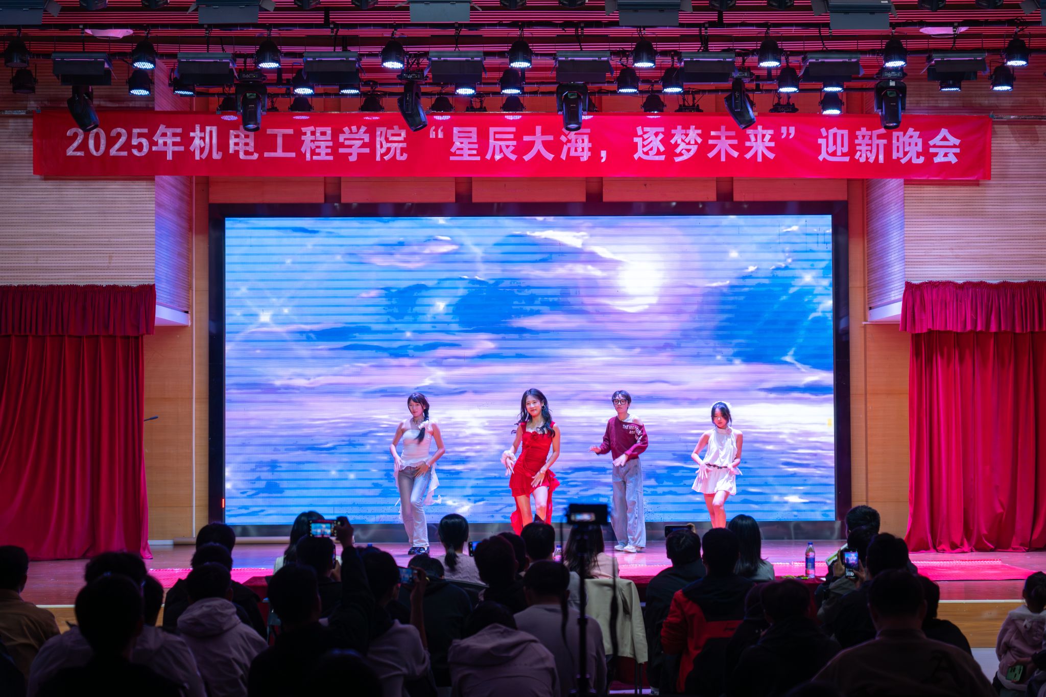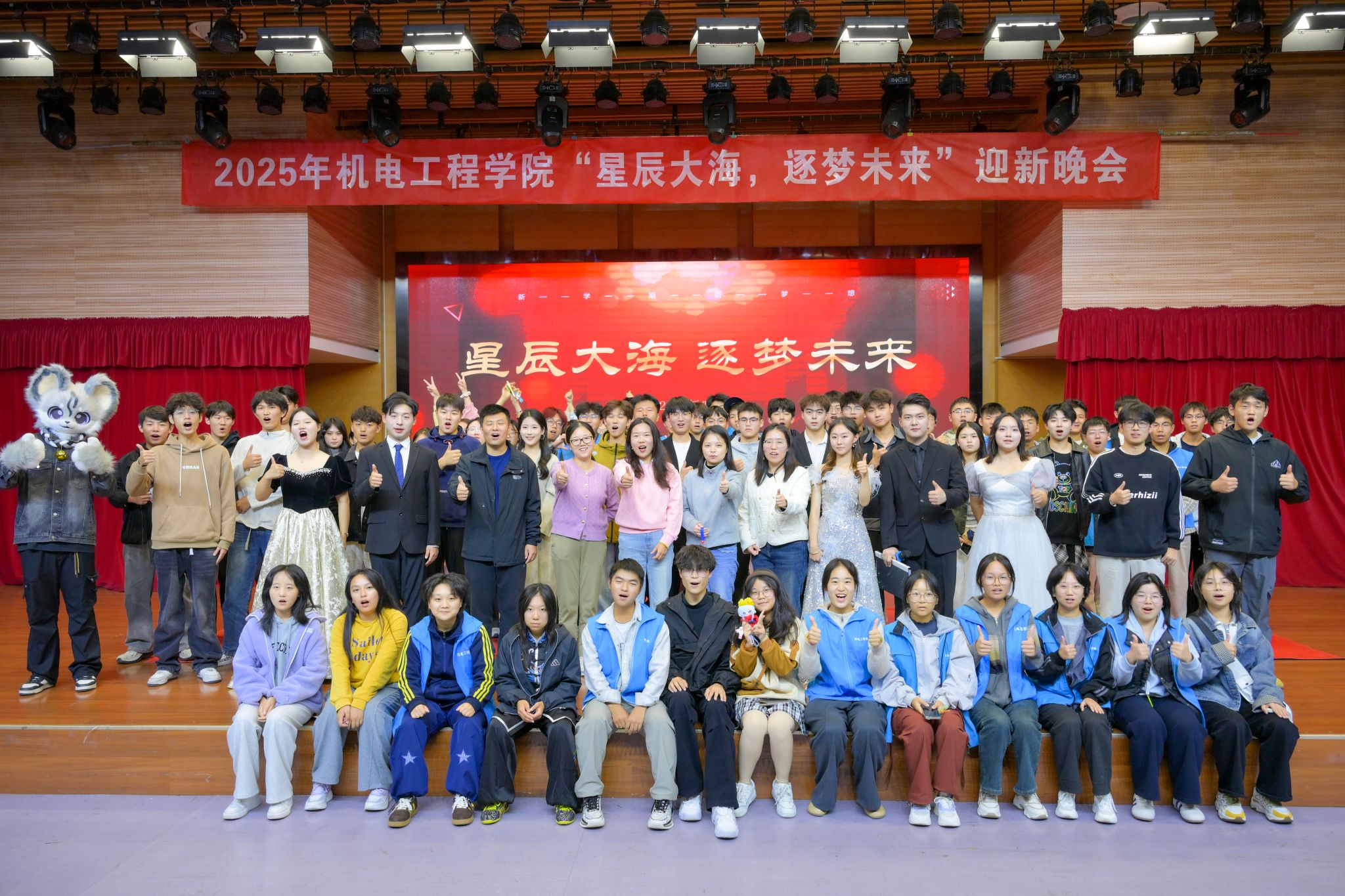 整场晚会节奏紧凑、精彩纷呈,既有青春活力的张扬,也有温情浪漫的表达,更有传统文化的传承,全方位展现了机电学子的多元风采。演出落幕时,学院领导老师与全体演职人员一同上台合影留念,定格下这一温馨难忘的时刻。(文/丁晶晶 摄影/赵轩基 审校/张东霞 审核/魏涛)