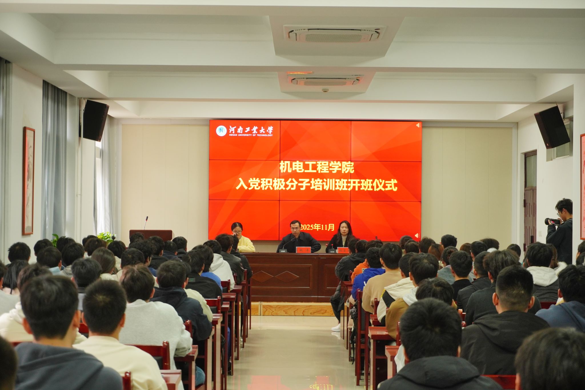 在惟明楼捷赛厅举行秋季学期入党积极分子培训班开班仪式。学院党委书记魏涛、党委副书记张东霞、全体辅导员老师及117名入党积极分子参加仪式。开班仪式由院团委书记丁晶晶主持。