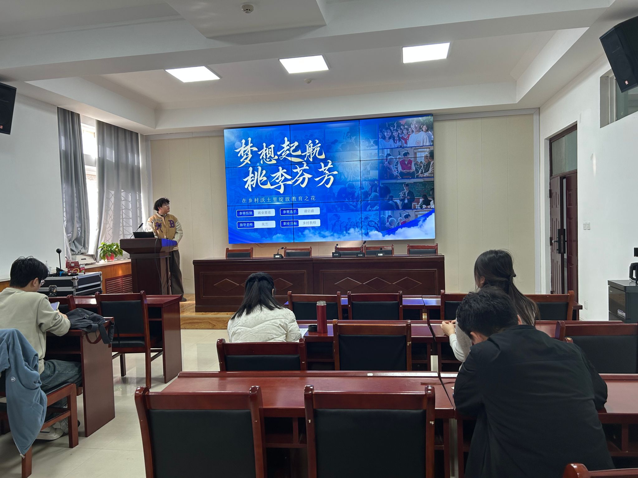在捷赛厅举办职业规划大赛院级选拔赛。学院党委副书记张东霞及全体辅导员老师担任评委。