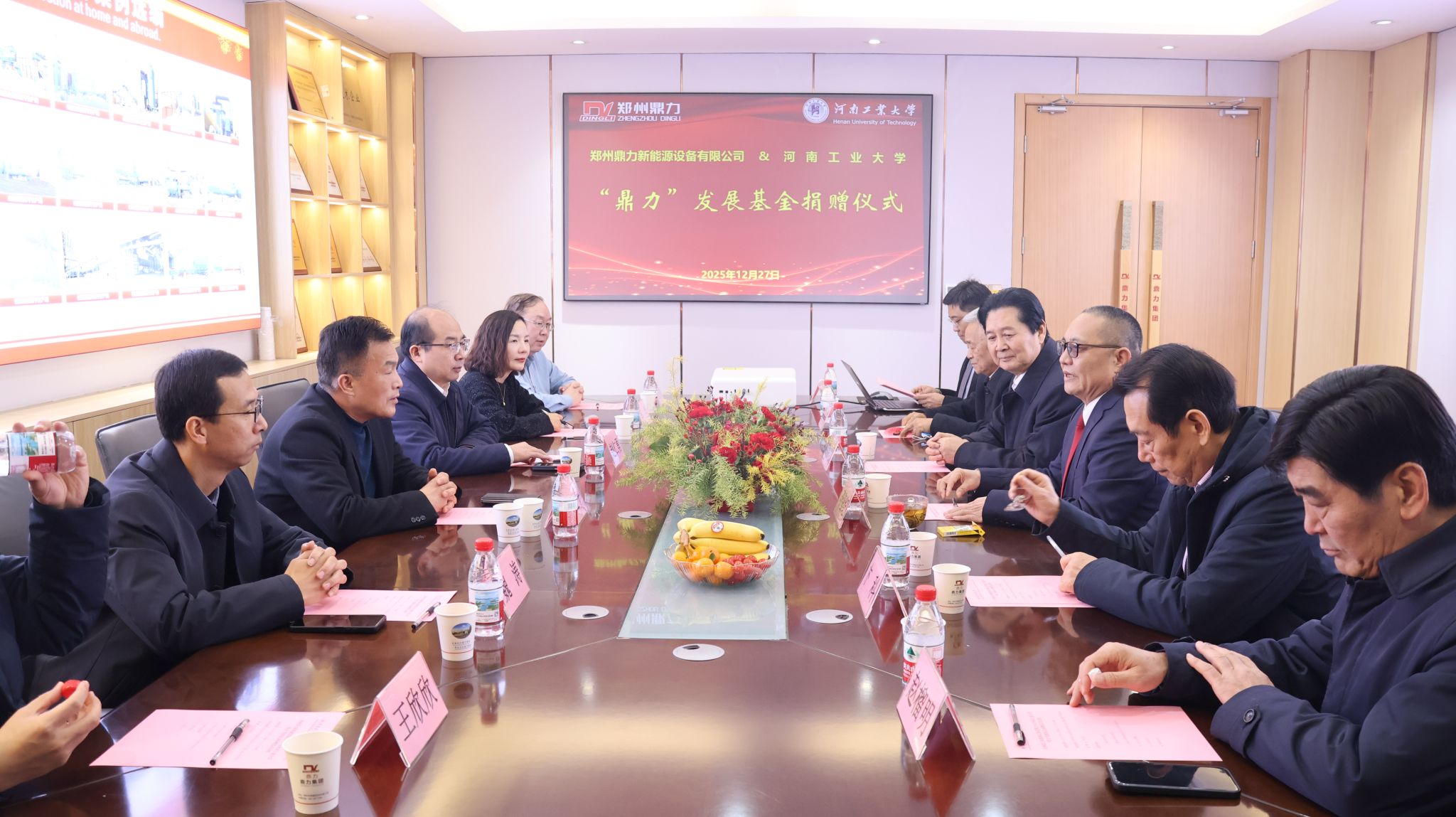 12月27日,河南工业大学机电工程学院“鼎力”发展基金捐赠仪式在郑州鼎力新能源设备有限公司举行。河南大学原校长娄源功、河南工业大学原校长卞科、河南农业大学原党委副书记赵榴明,河南工业大学副校长牛进平、副校长赵仁勇,管理学院原党委书记李怀西、低调看直播