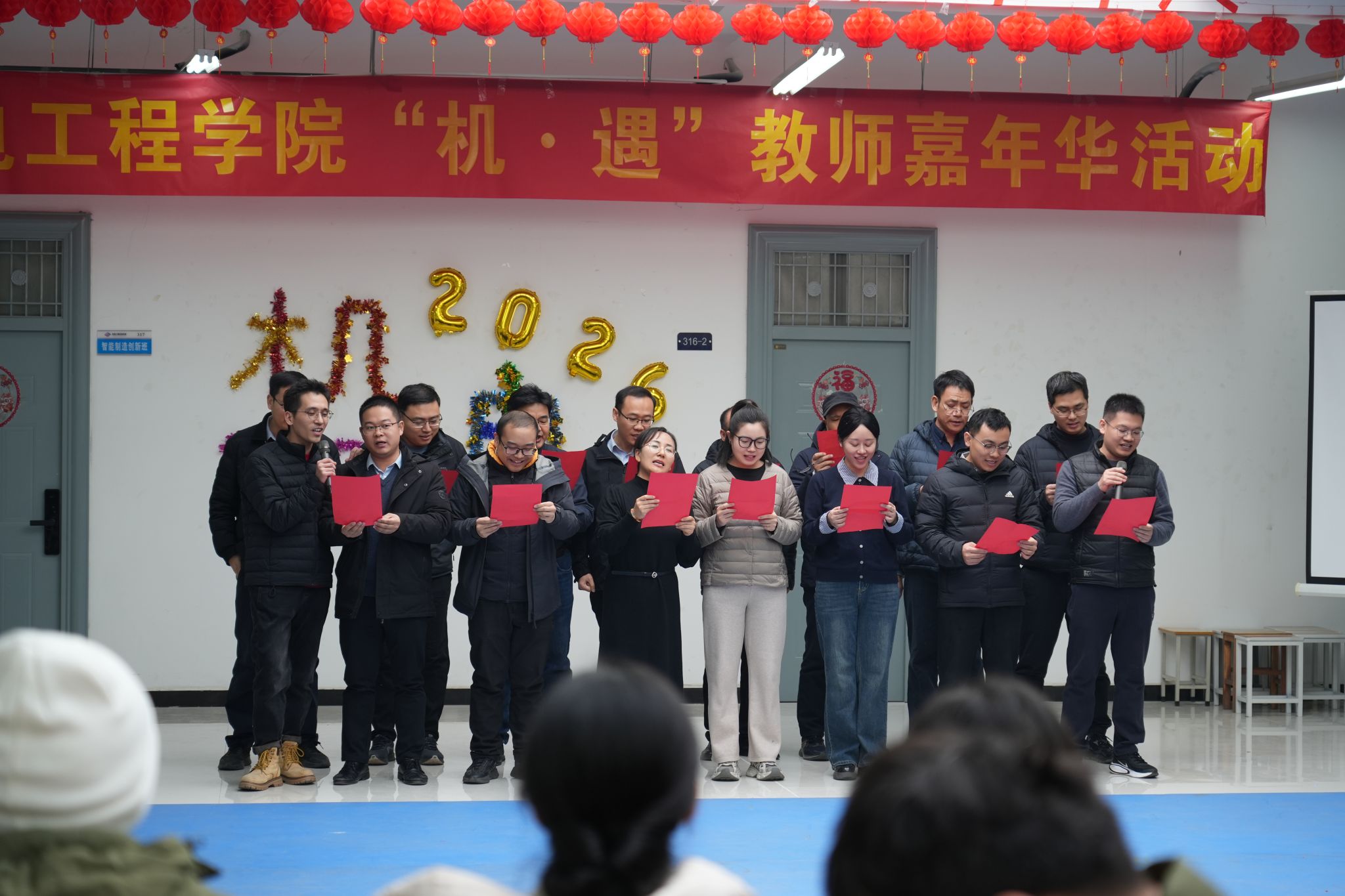 为迎接2026年元旦佳节,进一步丰富教职工文化生活、提升学院凝聚力,低调看直播 1230日在机械工程创新实验中心三楼大厅举办“机·遇”教师嘉年华活动。学院领导班子与全体教师欢聚一堂,共庆新年。