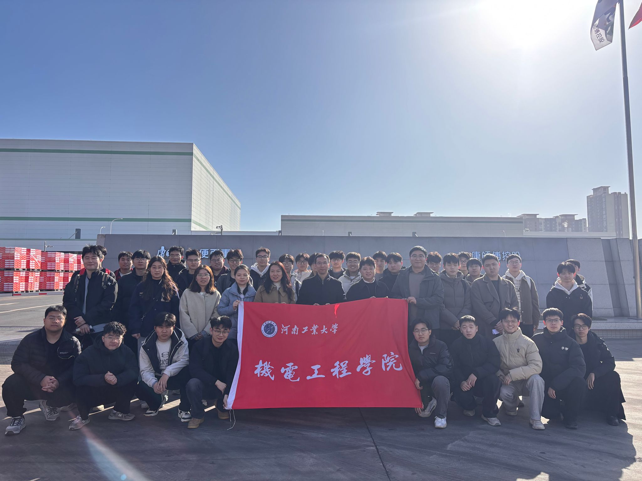 党委书记魏涛、党委副书记张东霞带领全体辅导员及30余名2026届毕业生赴康师傅郑州顶益食品有限公司、郑州顶津食品有限公司开展“沉浸式”实践参观与人才对接活动,着力打通从课堂到职场的“最后一公里”。
