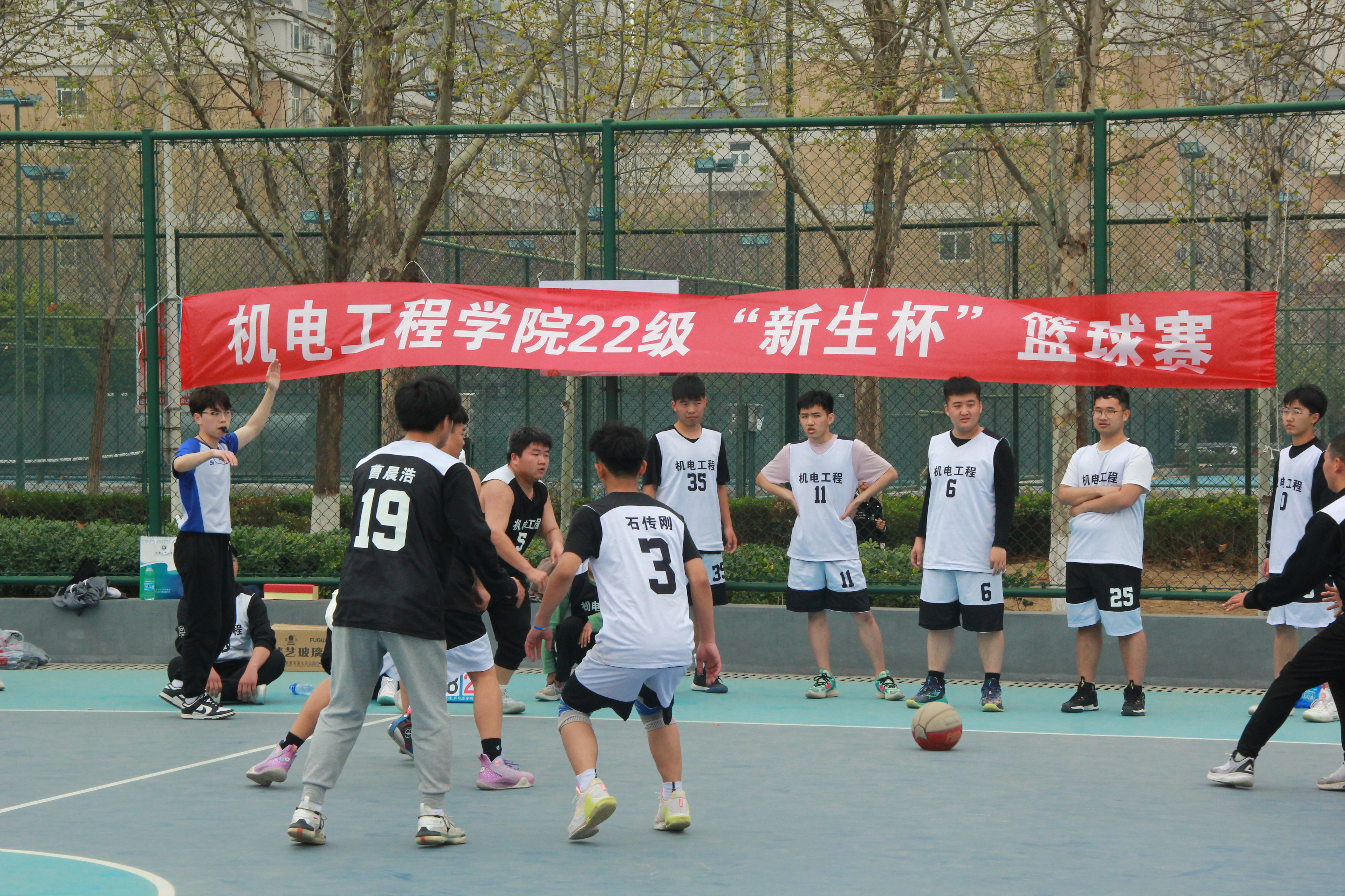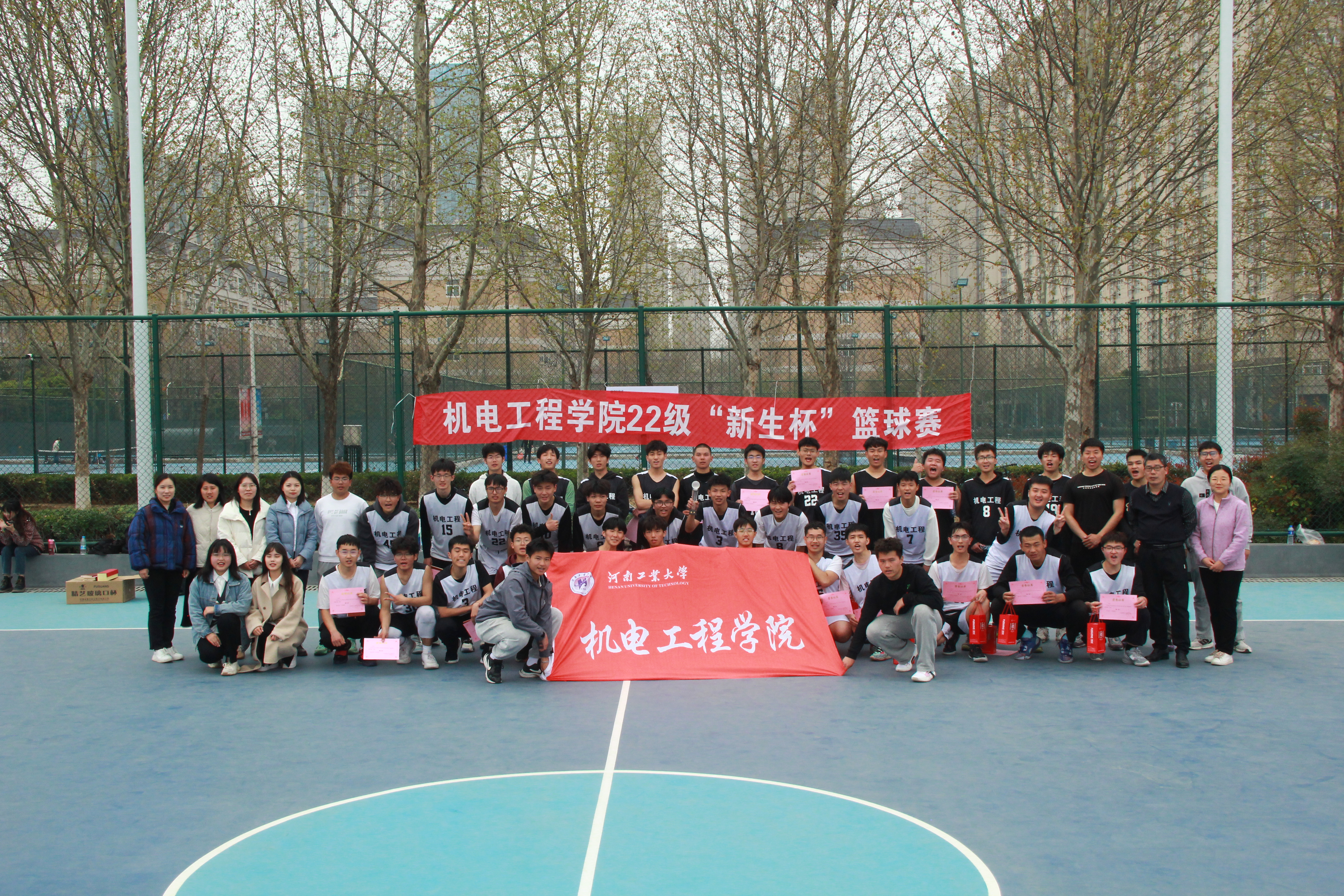经过小组循环赛、排位赛的激烈角逐,机械2201、2102代表队最终以38:35的三分优势赢得此次篮球赛冠军。智造2205、2206代表队获得亚军,智造2203、2204代表队获得季军。辅导员老师为获胜团队颁发了奖杯并与全体队员合影留念。