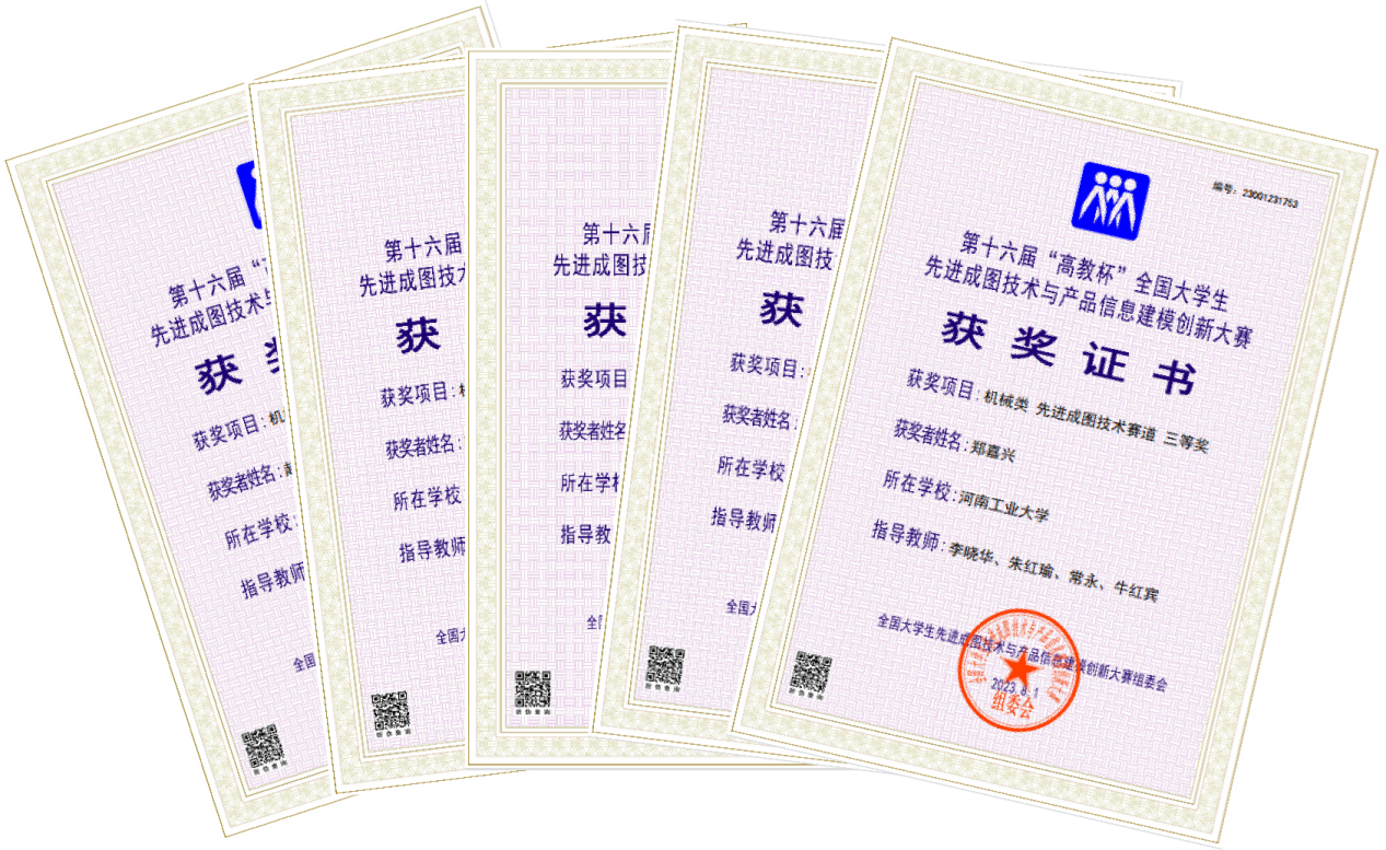 参赛学生在牛红宾、任彩霞等老师的悉心指导下,最终获得机械类先进成图技术赛道三等奖5项。