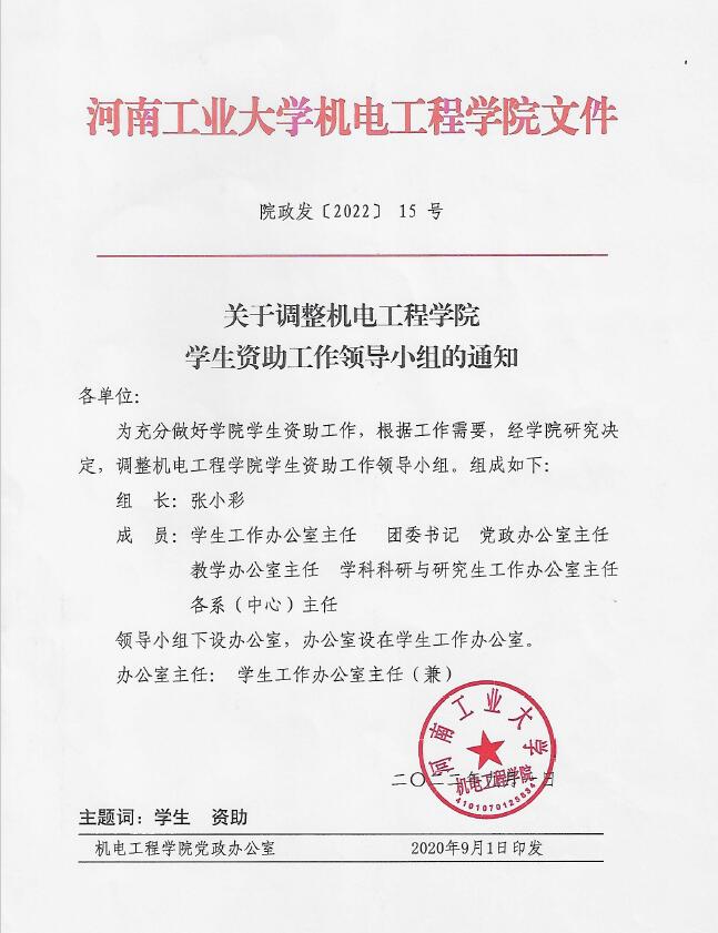 关于调整低调看直播 学生资助工作领导小组的通知