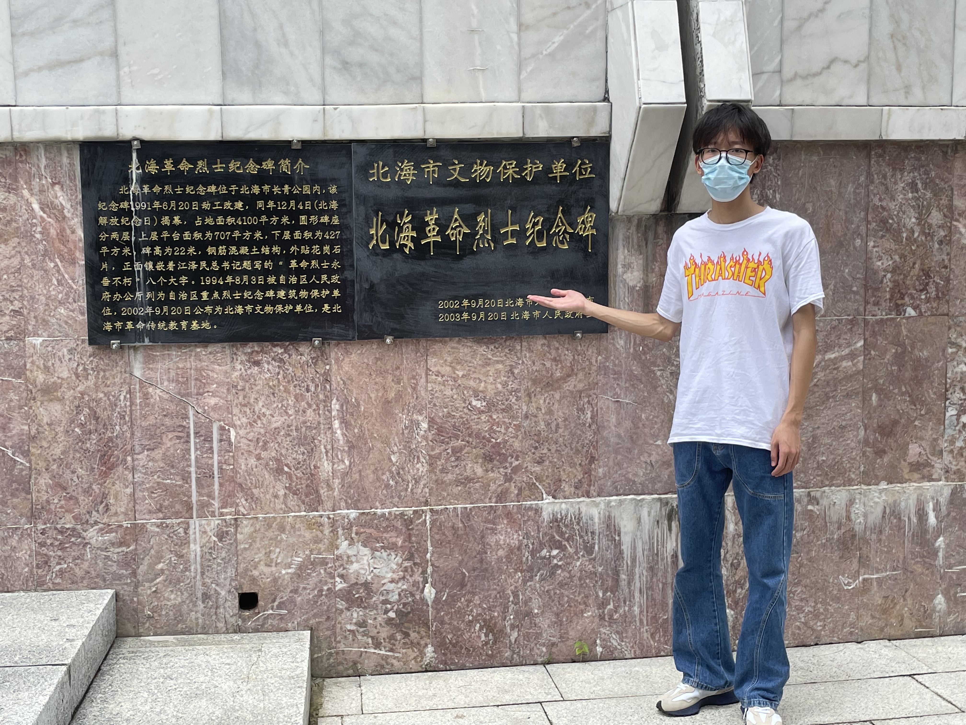 在这次社会实践当中,我选择了位于广西北海市长青公园内的革命烈士纪念碑作为实践地点,7月6日,我来到了革命烈士纪念碑的脚下。一进入公园,就可以看到纪念碑屹立在正中央,庄严雄伟,铜制的雕像在正午烈阳的照耀下,散发着光芒,照进了心中,令人肃然起敬。踏上一层又一层的台阶,一步一步地接近纪念碑,对革命先烈的敬意油然而生,下意识行起了注目礼。