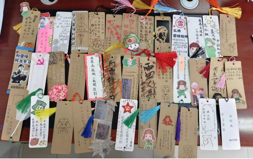 在活动过程中,同学们挑选自己喜欢的贴纸、书签模板和流苏,围绕“弘扬雷锋精神”进行创作。“我愿做一颗永不生锈的螺丝钉”,“人的生命是有限的,可是,为人民服务是无限的,我要把有限的生命,投入到无限的为人民服务之中去”……同学们认真写下一句句经典流传、发人深省的雷锋语录,认真描绘着心中的雷锋形象,给这小小的一方书签,赋予了新的生命。这些用心制作的书签,将雷锋的形象跃然纸上,传递出同学们承诺践行雷锋精神的决心。