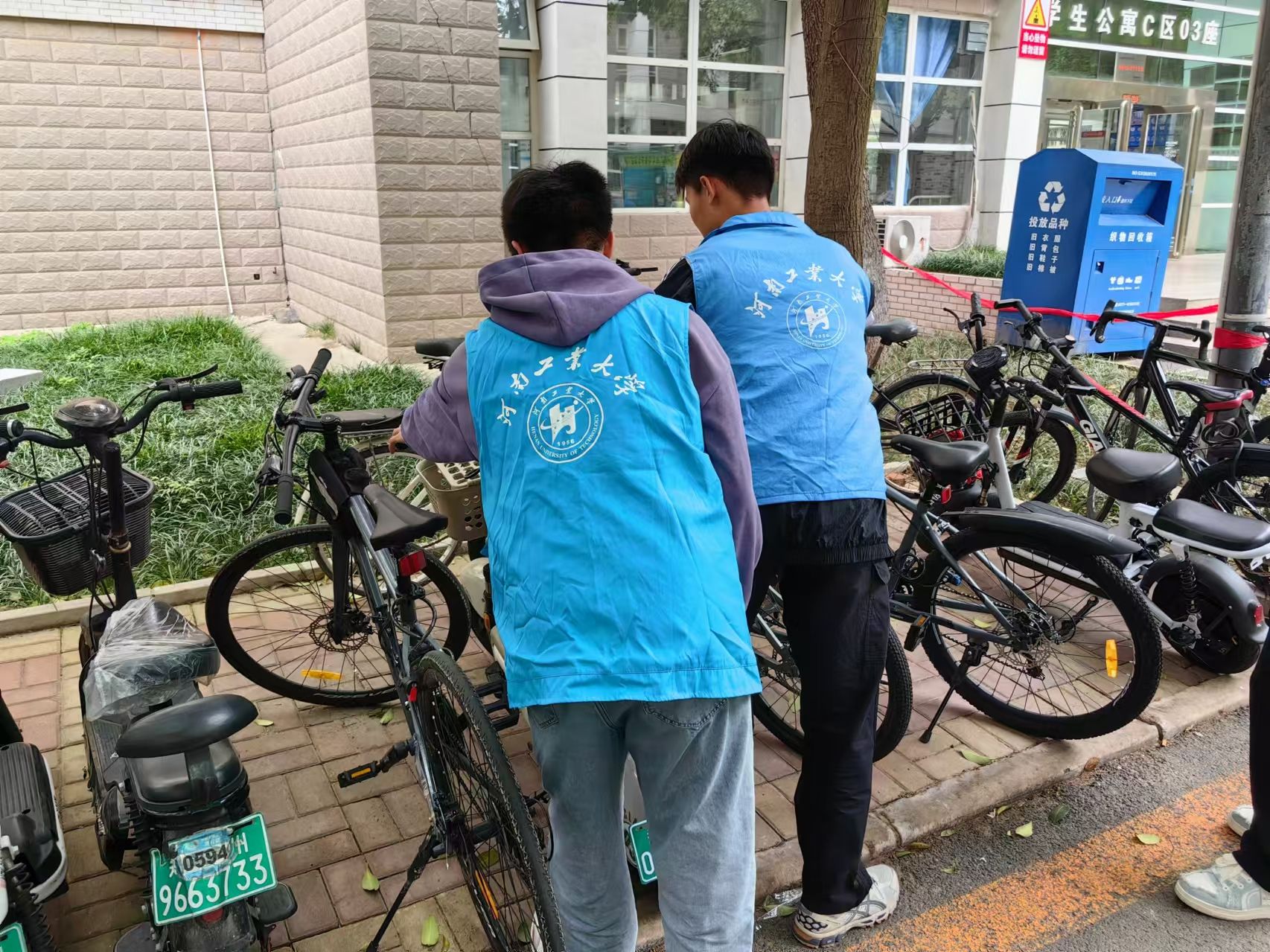 志愿者工作部在河南工业大学莲花街校区学生公寓A、B、C、D区举行了“爱校园,我行动”志愿服务活动,14位志愿者参加。