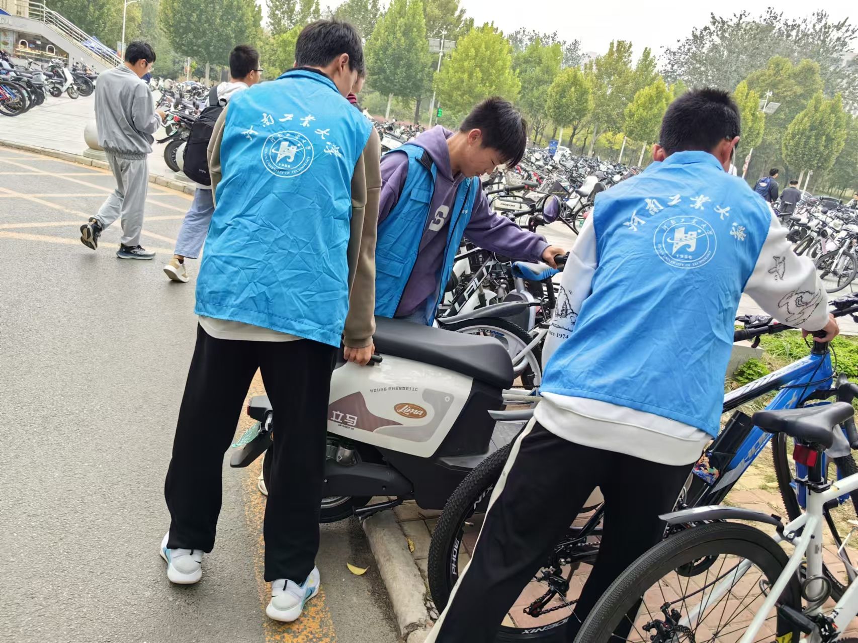 本次志愿活动的目的是维护校园干净整洁,保持校园交通秩序,此次志愿活动中,志愿者们积极参与,他们进行活动时着装整齐,言行举止文明,树立了文明形象,志愿活动过程中我们始终把安全放在第一位,在挪动车辆时也注意对车辆的保护,同时也保护自己的双手,以免在转运过程中被尖锐处划伤,志愿者们积极进行工作交流,采取了最省事的方式挪动车辆。