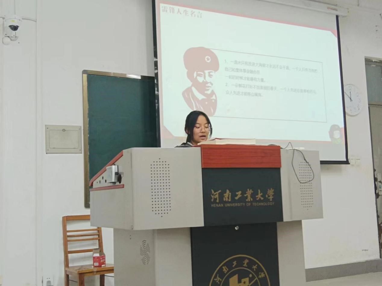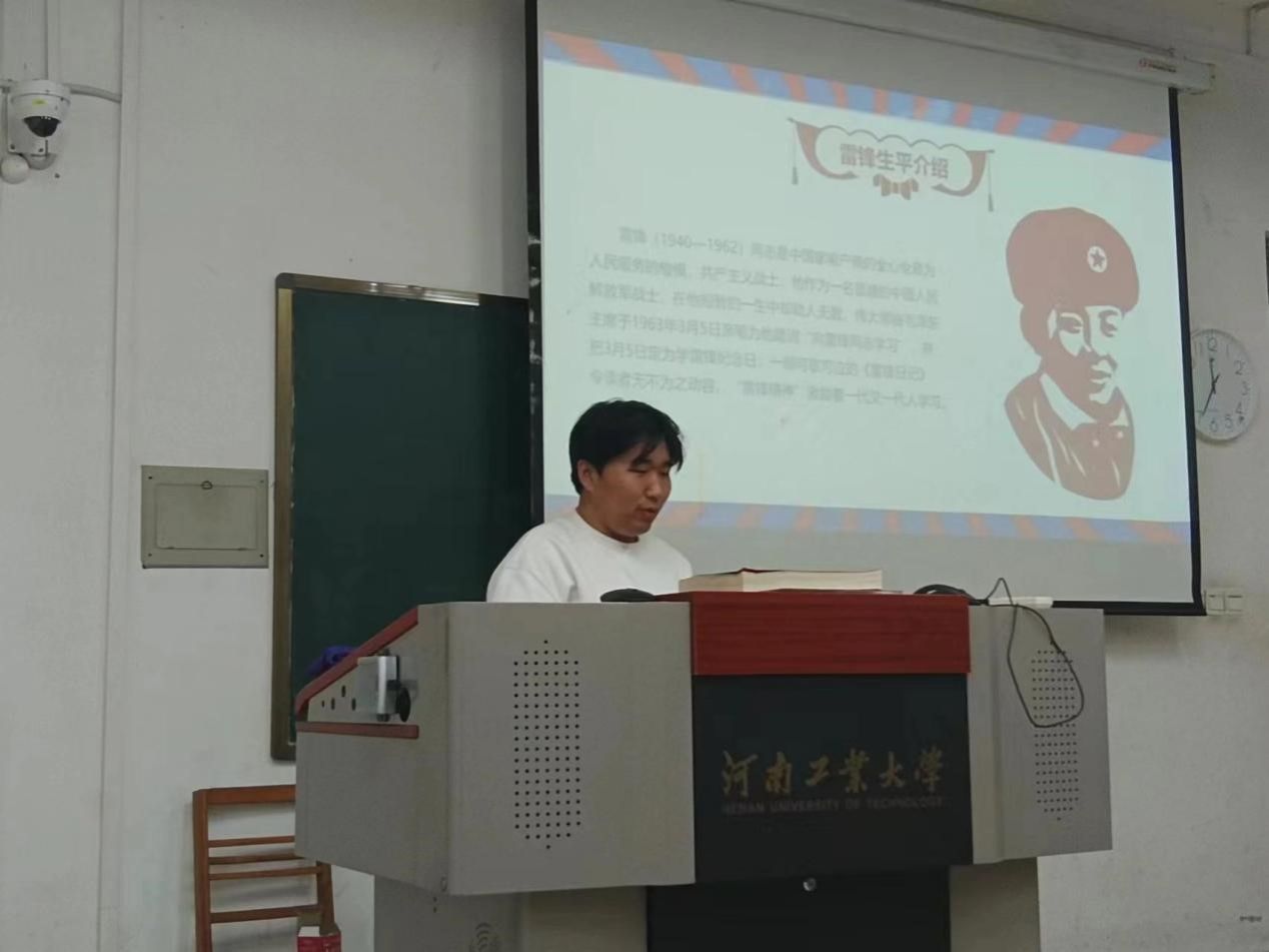志愿者工作部在河南工业大学莲花街校区4105教室举行了“雷锋月”宣讲活动,10位同学参加。