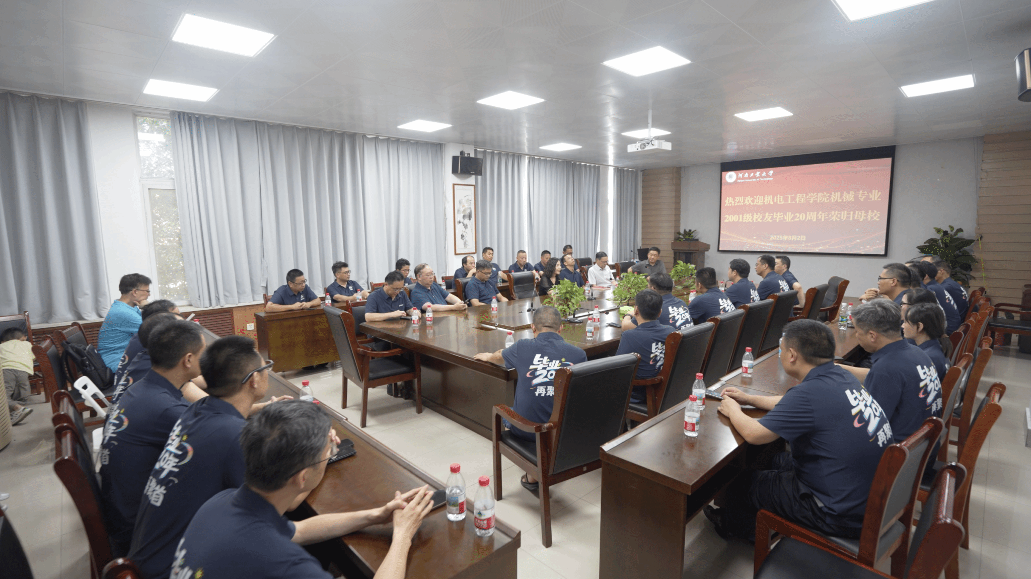 82日,低调看球 2001级机械设计制造及其自动化专业30余位校友重返母校,共庆毕业二十周年,共叙同窗情、师生情。学校党委办公室主任、校长办公室主任、校友总会会长刘红军,院领导魏涛、吴兰、朱红瑜及教师代表在惟明楼7244会议室与校友进行了座谈交流。