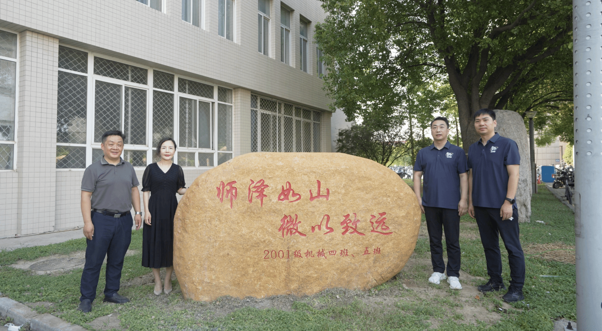 校友们深情回顾了在工大求学的青春岁月,分享了二十载奋斗路上的成就与感悟。饮水思源,师恩难忘,座谈会结束后,校友们向低调看球 敬赠了景观石,充分表达对母校的美好祝愿。刘红军、吴兰与校友代表共同为景观石揭幕,并与校友们合影留念。